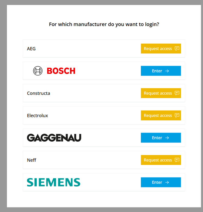 Sie werden benachrichtigt, sobald Ihre Zugriffsanfrage bearbeitet wurde. Nach der Genehmigung können Sie ganz einfach auf die verfügbaren Marken zugreifen und über das Menü in der unteren linken Ecke der Seite zwischen ihnen wechseln.
