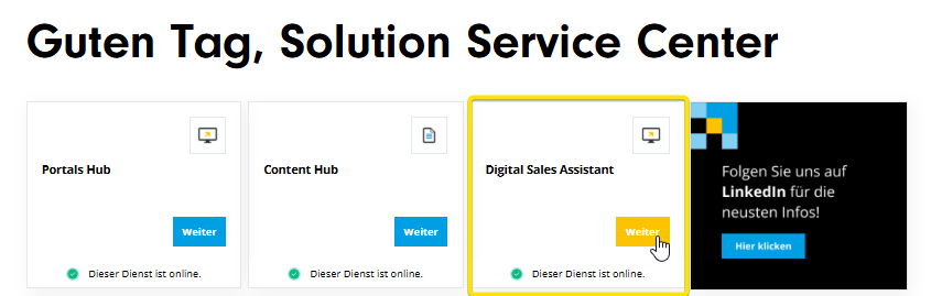 Melden Sie sich bei Ihrem Tradeplace-Konto an und navigieren Sie zum Digital Sales Assistant (DSA)-Service.