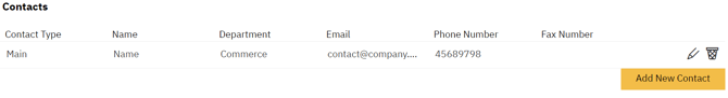 Sie können zwei Kontakte angeben (Haupt- und Zweitkontakt). Bitte versuchen Sie für jeden Kontakt, den Sie hinzufügen, alle Felder auszufüllen. E-Mail und Telefonnummer sind wichtig für die zukünftige Kommunikation. Klicken Sie auf Neu.
