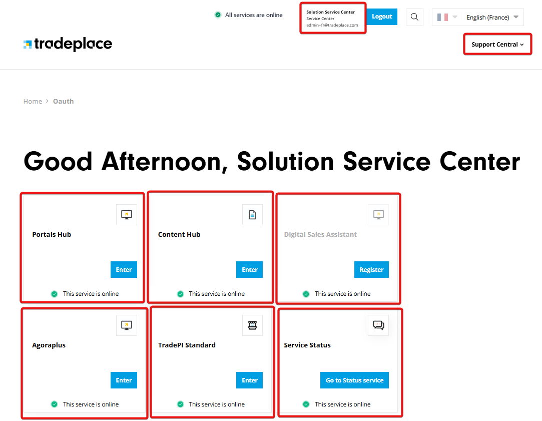 On the home page, you can sort the display of available services (list and tile view available). Click on Enter on the Portals hub