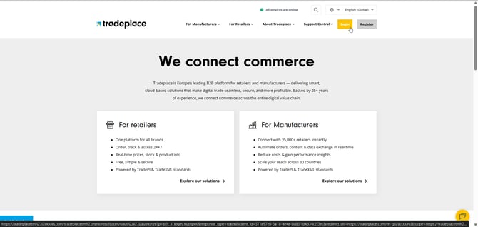 Open the Tradeplace main page and click on "Login"