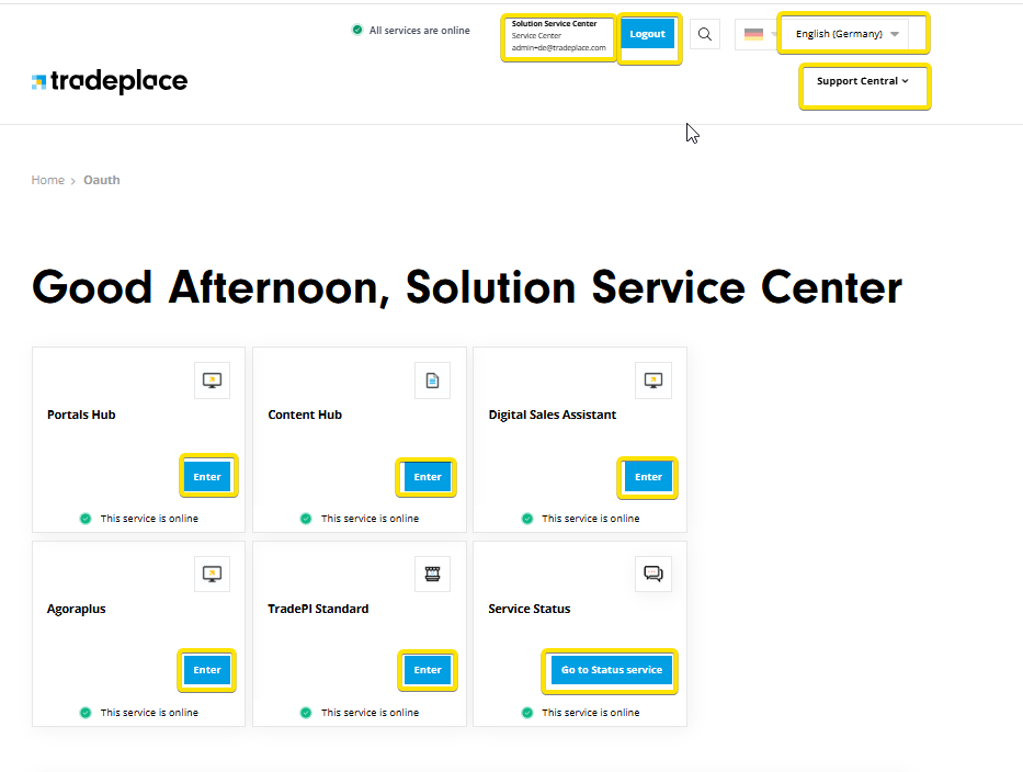 Once your account is active, you will be able to log in and see the available services, your account configuration, the language preference, access to our help center and a button to change the page view.
