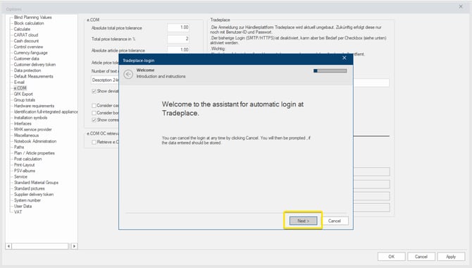 Open the eCOM system option in your CARAT software and select the 'Automated Login' button.