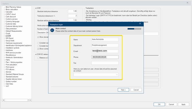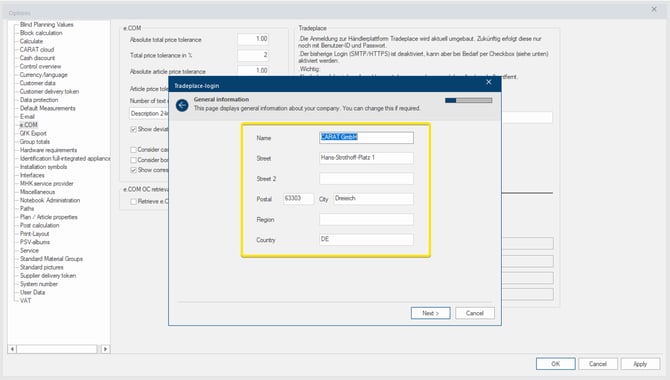 - Select the "Tradeplace" option in the "Transmission format" area.