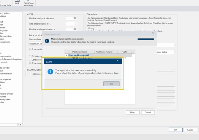 Once this process is complete, you must set CARAT to transmit orders via Tradeplace. Follow these steps to do this: