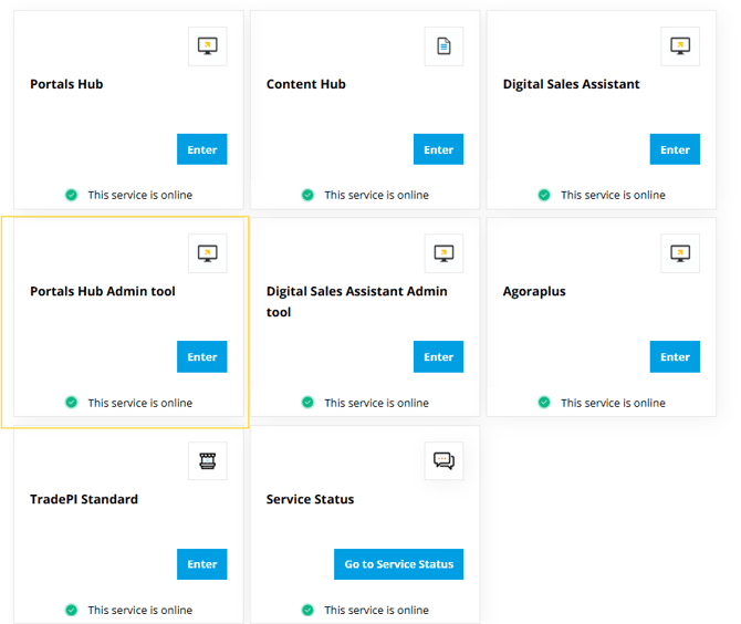 Seleccione el Centro de administración de portales (solo visible para usuarios con privilegios de administración).
