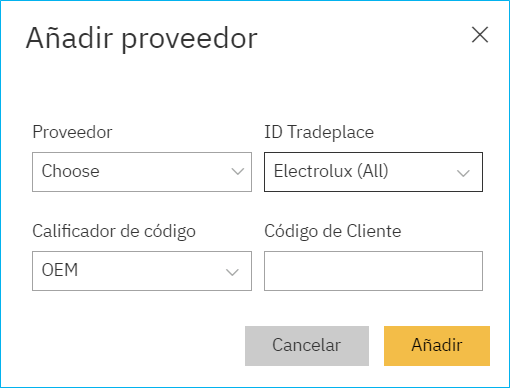 Le recomendamos que se ponga en contacto con su representante local de cada proveedor antes de configurar Tradeplace dentro de Winner. Este punto es muy importante ya que su proveedor estará involucrado en el proceso de registro cuando necesite habilitar su conexión.