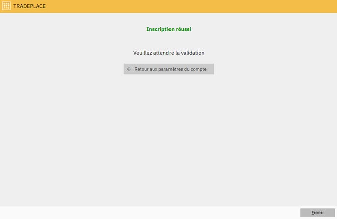 Cela ouvrira une fenêtre avec les paramètres de Tradeplace qui doivent être complétés avec les détails de votre organisation.