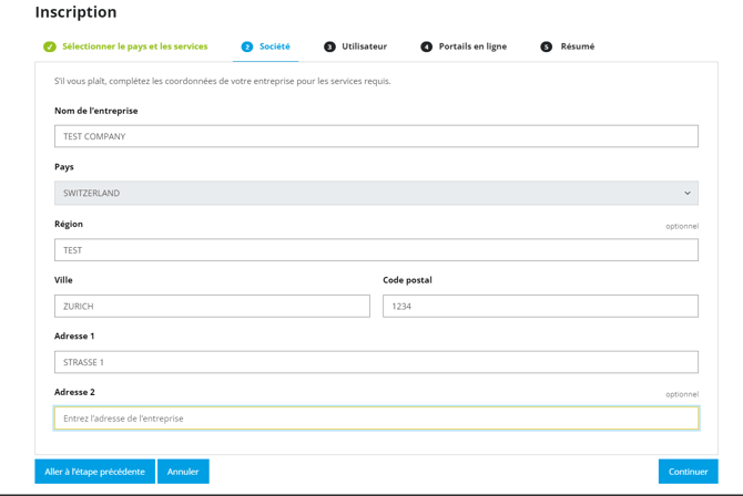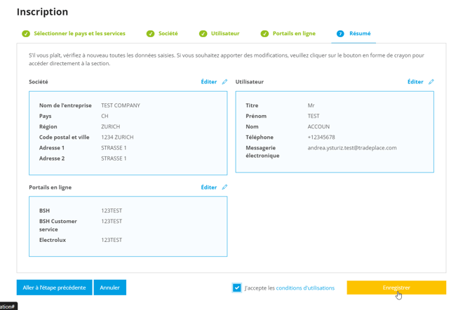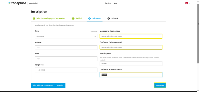 Saisissez vos données personnelles en tant qu'utilisateur de l'entreprise. Insérez ici votre nouvelle combinaison d'e-mail, pour générer un utilisateur différent.
