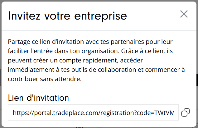 2. Un message contextuel apparaîtra, veuillez copier le lien d'invitation et le fournir à votre collègue.