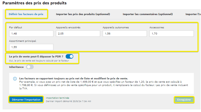 - Définissez les facteurs pour les différentes catégories. Ces facteurs peuvent être remplacés si vous définissez un prix de vente spécifique pour un produit.