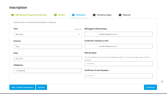 Saisissez vos données personnelles en tant qu'utilisateur de l'entreprise.